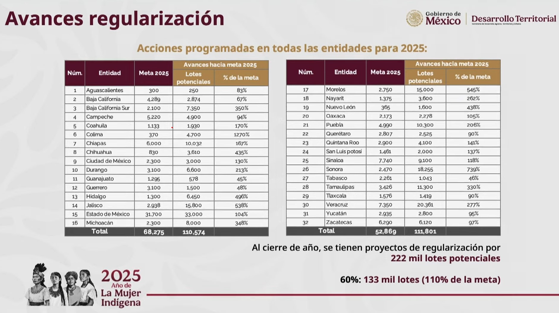 En Baja California Sur se busca la expropiación de otros mil lotes y la regularización vía contratos de mandato en proceso de 12 mil lotes.