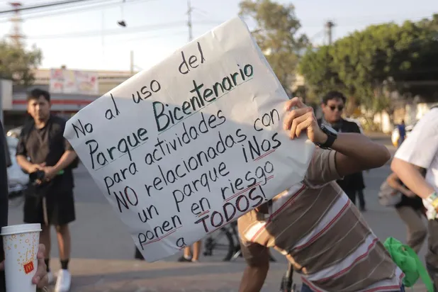 Alrededor de las 17:30 horas del domingo 6 de abril comenzó la protesta en el Parque Bicentenario por las muertes de los periodistas Berenice y Miguel Ángel, quienes fallecieron luego de que les cayera encima una estructura metálica durante el festival Axe Ceremonia; informa MILENIO.