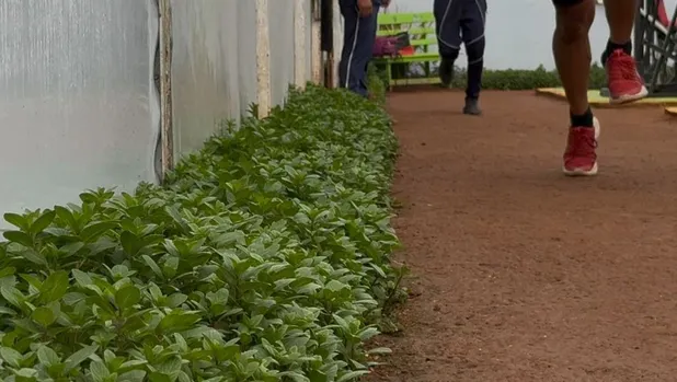 Al interior se recorre una hoja para entrar y se recibe a los usuarios con una trotapista, cuyos alrededores tienen la siembra de diferentes especies de plantas.