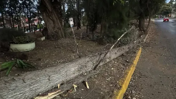 Protección Civil y Bomberos, junto con elementos de la Comisaría General de Seguridad Ciudadana, atendieron la caída de al menos siete árboles y múltiples ramas en distintos puntos del municipio, debido a los vientos intensos que acompañaron la tormenta.