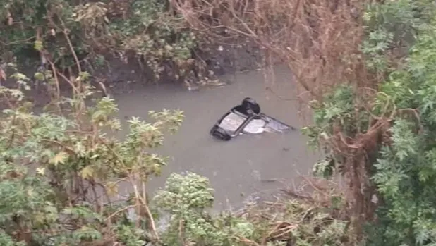 Equipos de bomberos trabajan en el lugar para determinar si el automóvil estaba ocupado al momento del accidente o si fue arrastrado estando estacionado. Hasta el momento, no se reportan personas lesionadas.
