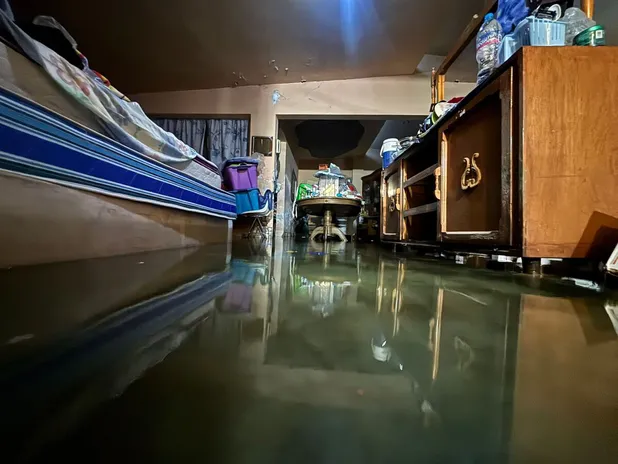 “¡Vea cómo está! Esto es cada año (…) Se volvió a inundar, está todo lleno y es inhabitable. Nos dieron un refri, estufa y dos colchones y ya se mojó”, contó a MILENIO, mientras colocaba costales en la puerta de su casa con la esperanza de que puedan ayudar a evitar el paso del agua.