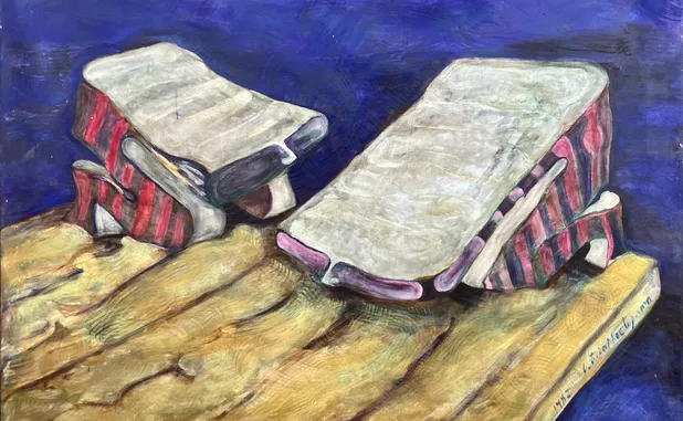 La disidencia, además, es una crítica social y política que se expresa a través de la pintura. Cierro el ciclo de la exposición con la pieza Nuestro radiante futuro, inspirada en el escritor ruso Alexander Zinoviev (1922-2006), uno de los grandes autores de la disidencia soviética. Filósofo, escritor y sociólogo ruso, conocido por su crítica al sistema soviético y por sus obras que exploran la vida bajo el régimen comunista. Entre sus libros más famosos se encuentran Cumbres abismales y Nuestro radiante futuro.