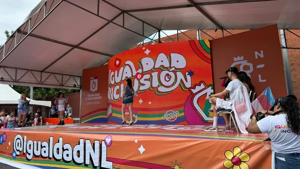 Horas antes del inicio de la marcha, la avenida Alfonso Reyes se ve llena de colores, alegría y una serie de presentaciones de integrantes de la Marcha de la diversidad Monterrey 2025 en un escenario de Igualdad e Inclusión de Nuevo León en el cual posaron y lo hicieron una pasarela antes de iniciar el contingente.