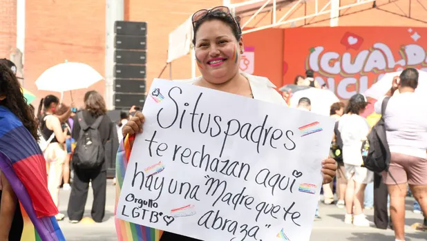 Con emotivo cartel, madre apoya a hija en Marcha de la Diversidad