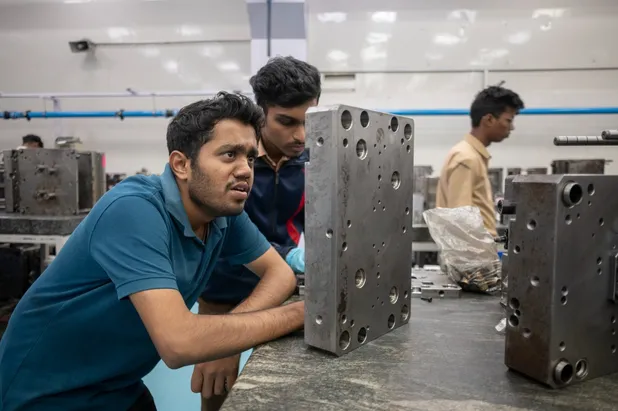 En una planta cerca de Devanahalli, en el sur del estado de Karnataka, los ingenieros de Indo-MIM realizan el moldeo por inyección de metal para cientos de empresas de todo el mundo, pues fabrica piezas para aviones, artículos de lujo, dispositivos médicos y mucho más.