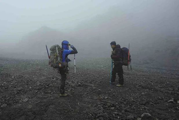 Alejandro despertó a las 10 de la noche y salió del albergue para ver las condiciones climáticas. Don ‘Layo’ salió de su camioneta y estuvieron media hora allá afuera, en el frío, mirando a la “montaña bonita e impredecible”, discutiendo si subir o no, a qué hora comenzar y hasta dónde era prudente intentar llegar. “No vamos a la cumbre, sólo vamos a intentar llegar al glaciar”, dijo Alejandro cuando volvió al albergue.