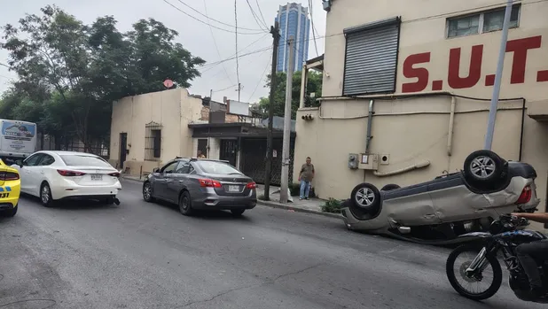 Una mujer resultó lesionada tras una volcadura en la colonia Independencia, en el municipio de Monterrey.