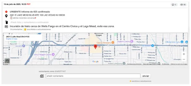 Stop ICE y ICEBlock son sistemas de alerta mediante los cuales las personas pueden reportar anónimamente la presencia de supuestos agentes migratorios o el desarrollo de redadas, con lo cual quienes se sienten en riesgo pueden alejarse mientras las organizaciones civiles se movilizan para la defensa de las víctimas.