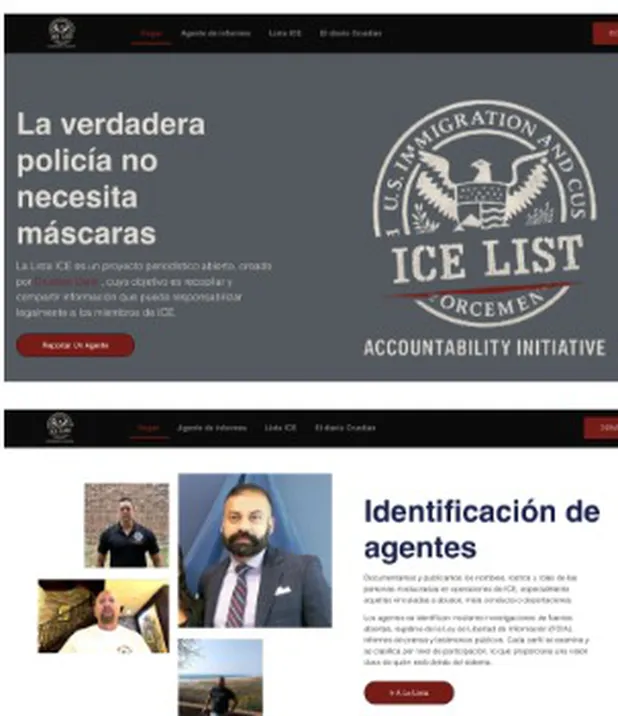 ICElist, “un proyecto periodístico abierto cuyo objetivo es recopilar y compartir información que pueda responsabilizar legalmente a los miembros de ICE”, invita a la gente a reportar a agentes del Servicio de Inmigración y Control de Aduanas y a personas y empresas que colaboran con él, así como a documentar sus redadas y delitos con el fin de resguardar evidencia que pueda sustentar futuras acciones judiciales en su contra.
