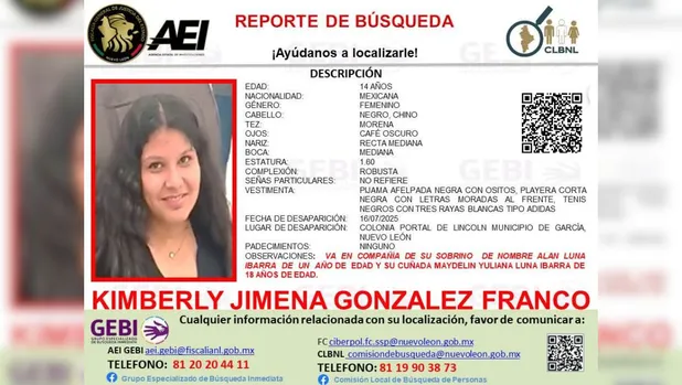 Maydelin estaba acompañada también de su cuñada, identificada como Kimberly Jimena González Franco, de 14 años de edad, la cual como señas particulares tiene, cabello negro chino, tez morena, de complexión robusta, estatura de 1.60 mts.