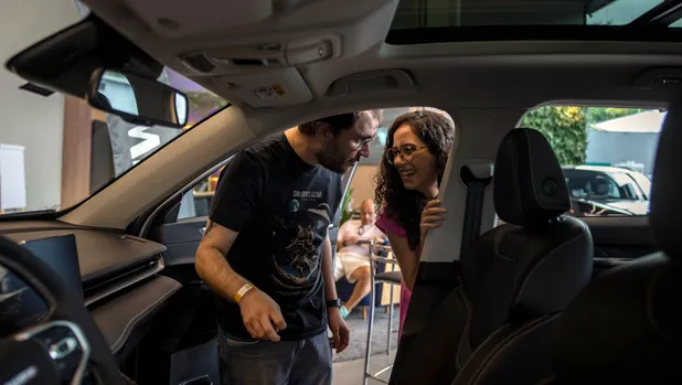 A continuación, avanzaron por la calle hasta el concesionario Great Wall. Probaron un modelo eléctrico deportivo, el Ora GT. A ella le encantó el techo corredizo. A él le gustó la facilidad de conducción.