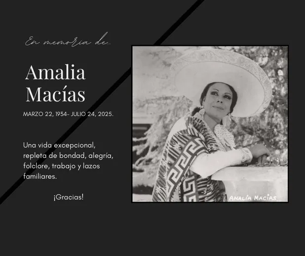 La música ranchera perdió a una de sus exponentes más talentosas: Amalia Macías. Este jueves, a través de su cuenta oficial de Facebook, se dio a conocer su muerte, sin detallar la causa; publica MILENIO.