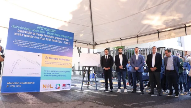 Pasadas las 10:00 horas de este viernes, el gobernador de Nuevo León, Samuel García; el alcalde de Monterrey, Adrián de la Garza; y el secretario de Ayuntamiento de San Pedro, Mauricio Farah, dieron banderazo a la primera etapa del proyecto que consiste en la construcción 980 metros lineales de drenaje pluvial.