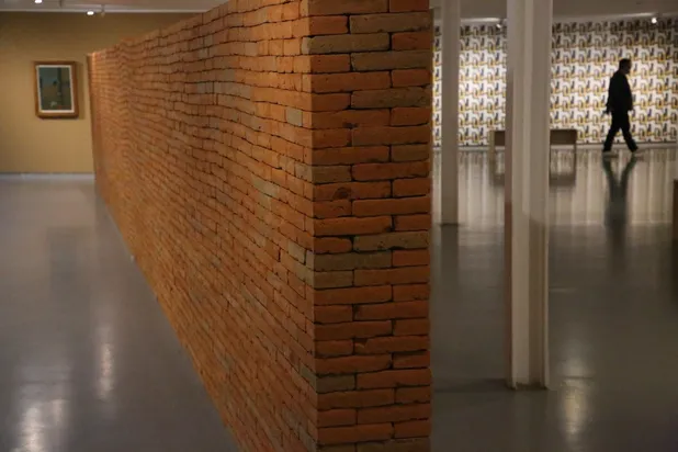 La exhibición incorpora piezas clave que representan esta idea, como una monumental obra de Jorge Méndez Blake, un muro de ladrillo que reafirma el significado del muro en sus distintas interpretaciones.