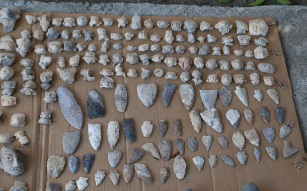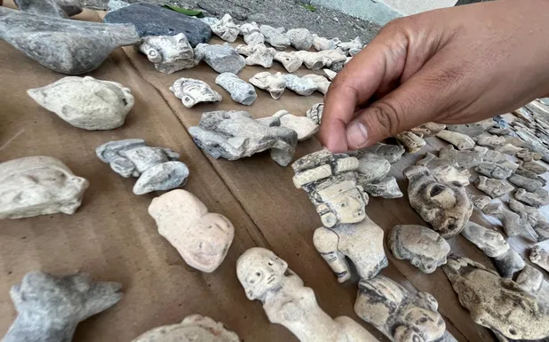 Piedras esculpidas, figuras de rostros y cuerpos de barro, así como herramientas prehispánicas que bien bastarían para crear un museo fueron encontradas en milpas del municipio de Altamira, en el sur de Tamaulipas, por parte de un solitario buscador de artesanías de culturas antiguas; publica MILENIO.