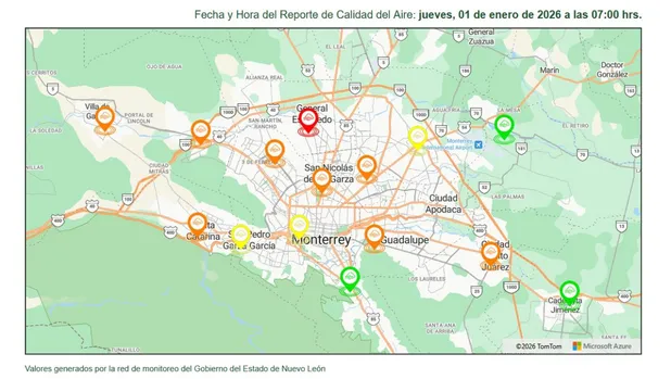 La dependencia señaló que de acuerdo con el Sistema Nacional de Información de Calidad del Aire (SINAICA) y de SIMA, la Zona Metropolitana de Monterrey ha presentado mejores condiciones de calidad del aire en comparación con otros estados del país afectados por el uso de pirotecnia.