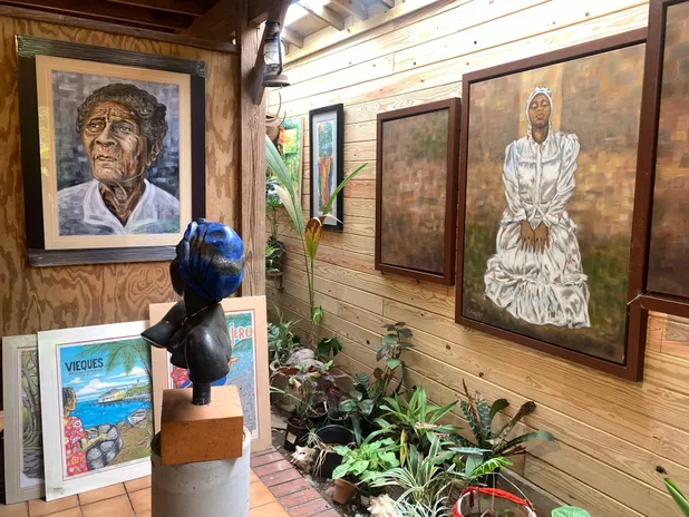 Por eso, el visitante que sale de su taller lo hace transformado. Afuera, el calor golpea con la misma intensidad con la que adentro lo abrazó la espiritualidad. Las calles del pueblo siguen sonando, los niños corren entre casas de colores, los vendedores ofrecen alcapurrias y piñas frías. Todo parece normal pero Loíza nunca lo es. Es un lugar donde la historia no ha sido reemplazada por el turismo, donde el arte sigue siendo una forma de comunión.
