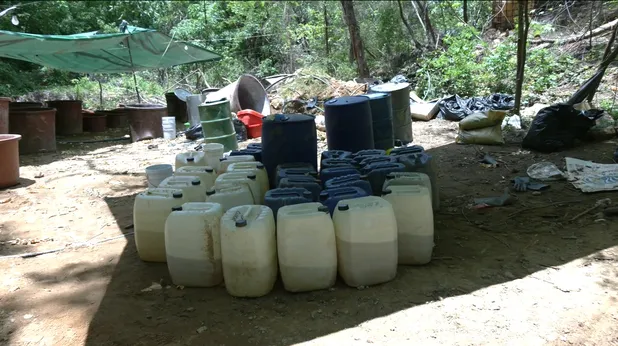 Lo más difícil fue dar con el laboratorio. La vereda estaba recién abierta: ramas quebradas, huellas de llantas, la maleza apartada a la fuerza. El sitio habría operado al menos un par de meses, oculto entre la espesura, apenas percibido por la comunidad cercana de El Potrero.