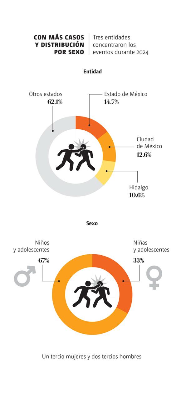 De acuerdo con los datos oficiales, dos de cada tres víctimas atendidas en hospitales tenían entre 12 y 17 años (66.2 por ciento), aunque también se documentaron casos en niñas y niños de entre uno y 11 años. Además, durante 2024 se registraron 44 menores indígenas y nueve con alguna discapacidad que requirieron atención médica tras sufrir violencia física en sus escuelas.